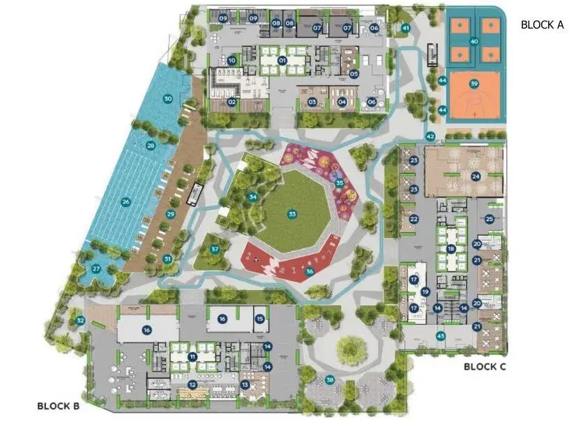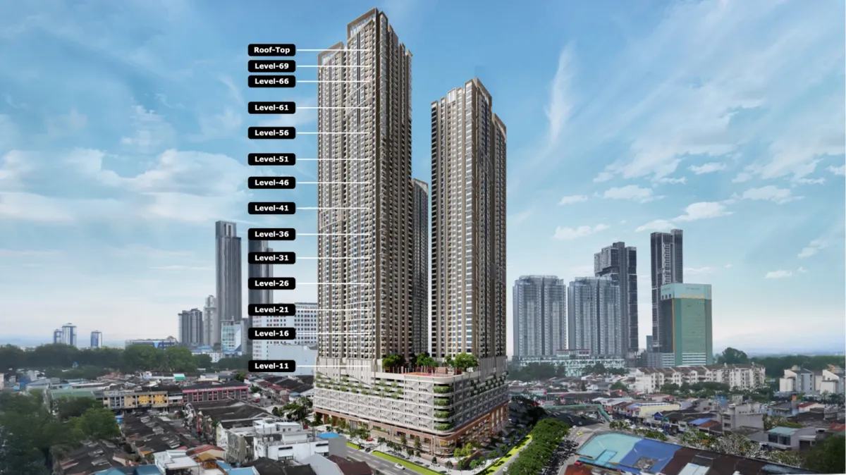 Inspired by Johor’s pineapple fields, our facilities blend nature with modern luxury. The 11th-floor sky deck features an infinity pool, open-air lounge, and co-working spaces—all designed with hexagonal patterns, natural ventilation, and sustainable materials.